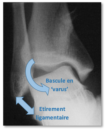Le diagnostic se fait par des radiographies en ‘varus forcé’ (Image 8) afin de faire apparaître le bâillement entre tibia et astragale (pathologique au-delà de 10°).